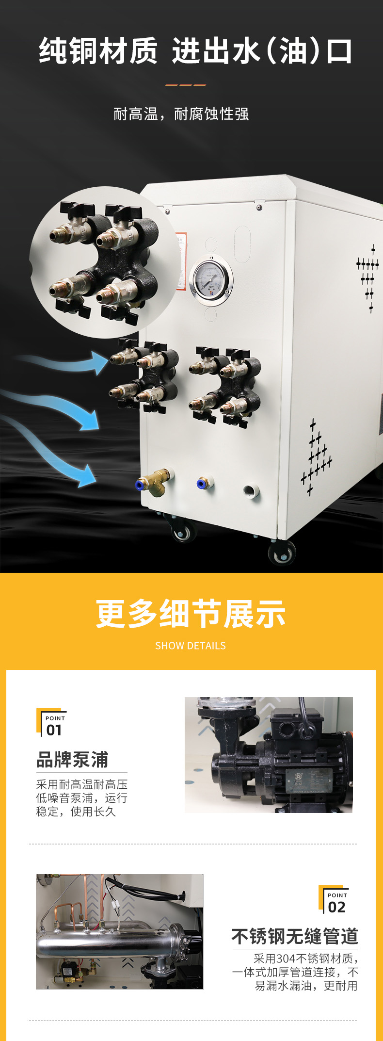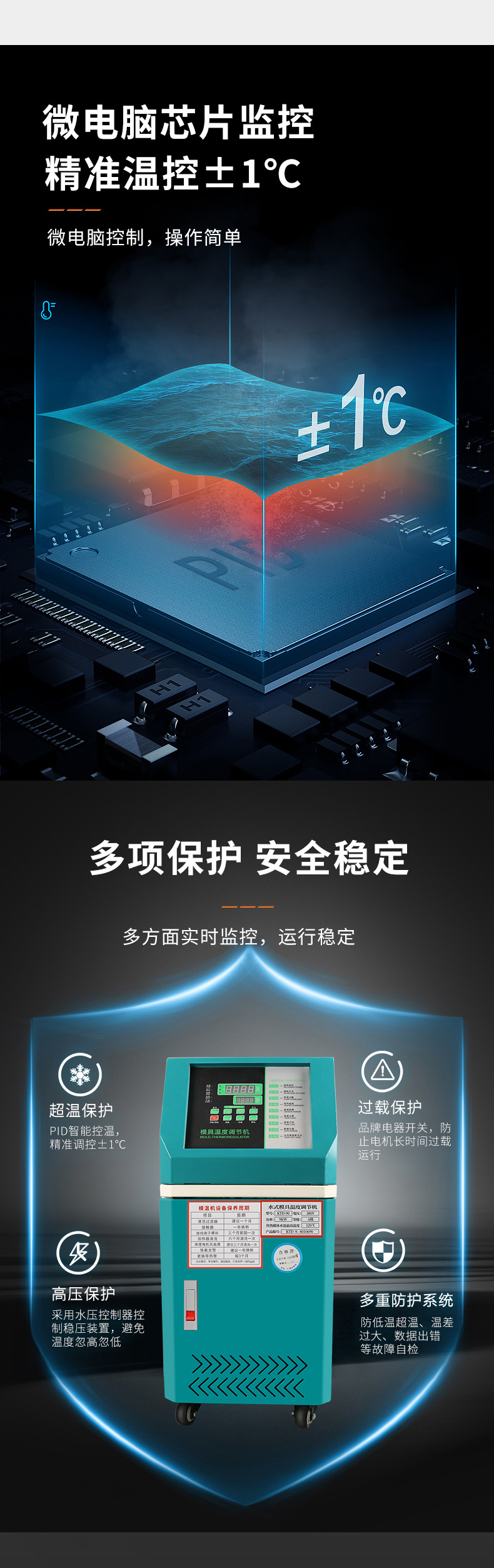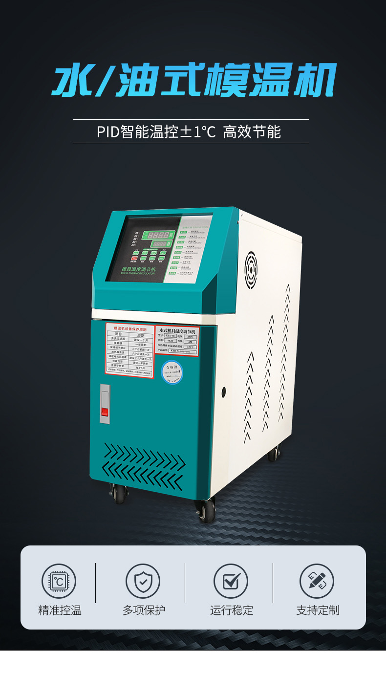 在現(xiàn)代化的工廠中,因應(yīng)市場(chǎng)的競(jìng)爭(zhēng),節(jié)省人力,提高品質(zhì),降低成本的經(jīng)營(yíng)策略是刻不容緩的,模溫機(jī)的使用,可使模具預(yù)熱時(shí)間減少,成品表面質(zhì)量提升及可完全自動(dòng)化生產(chǎn)。提高模具壽命是提高生產(chǎn)力的必要手段。
